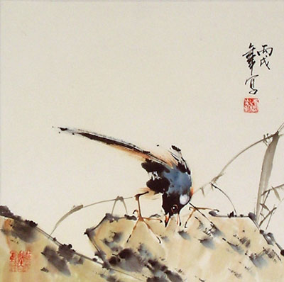 The one discernible difference, apart from paper color, is that Splash has blotches on the background. My invitation drops them onto the grid. The stunning ingenuity of this sent me to the artist’s CV to find out what institutions had nicked this exquisite chip off the cutting edge. It was—but surely you guessed—Yale. Well, Yale for an MA (1998) in East Asian Studies and Chinese painting, and Brown for a BA (1993) in art history, with concentration on China.