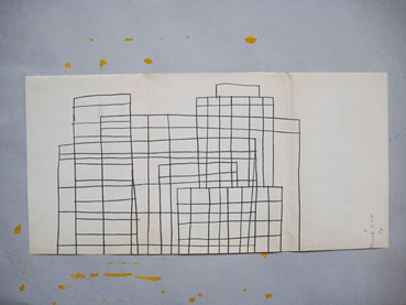That was my first thought when I saw the name on an oversized, electric red envelope in the mailbox. At quick glance, it looked hand-addressed—immature block lettering dotted with a blot or two. It was the kind of Magic-Markering ten-year-olds send to each other by way of party invitations. Then I turned it over and saw a gallery’s return address. The envelope unfolded into a poster announcing Nichols’ third exhibition at Ziehersmith. (How ever could I have missed the first two?) The image was a hastily drawn grid, of sorts, that looked identical to this: